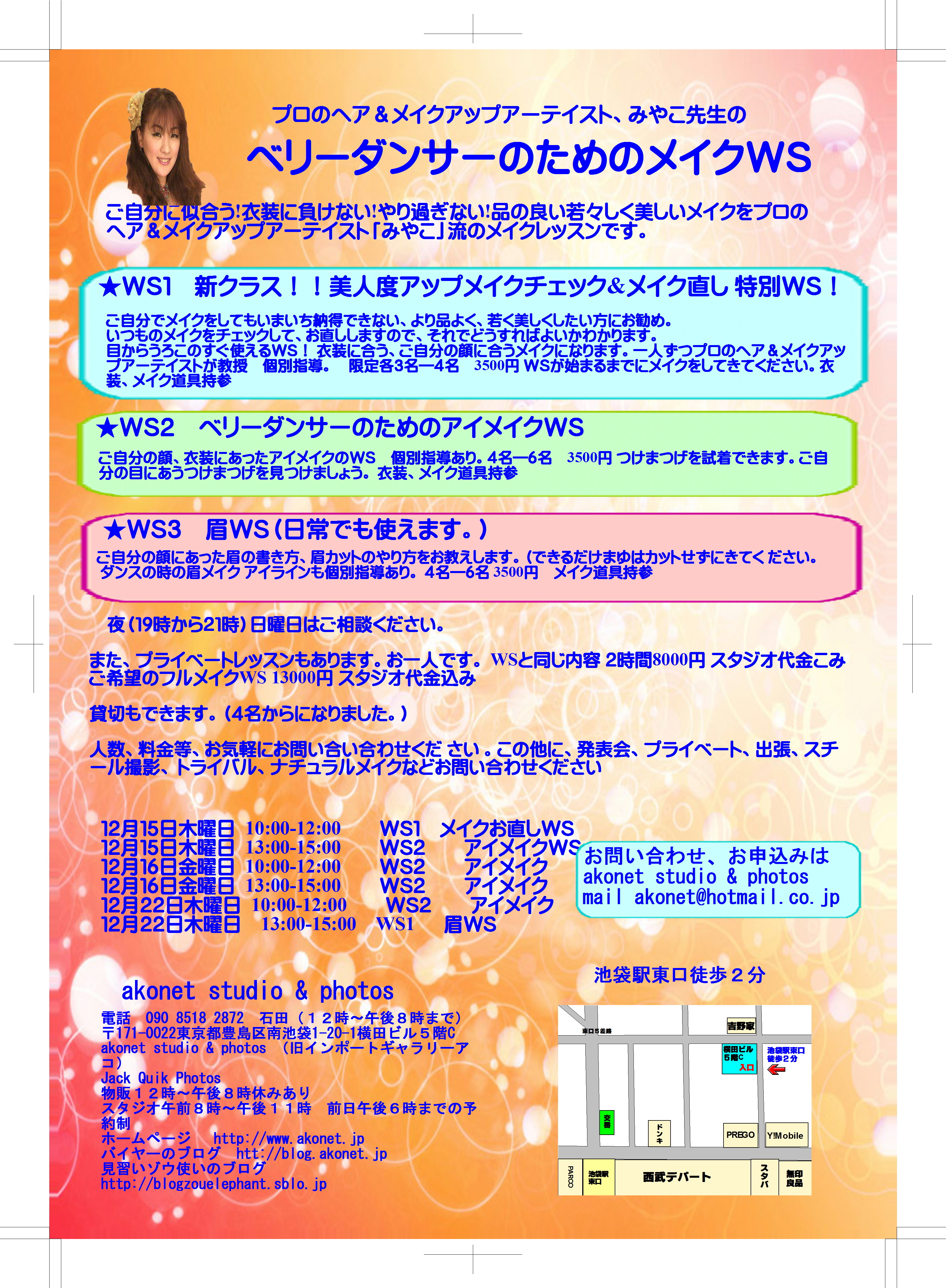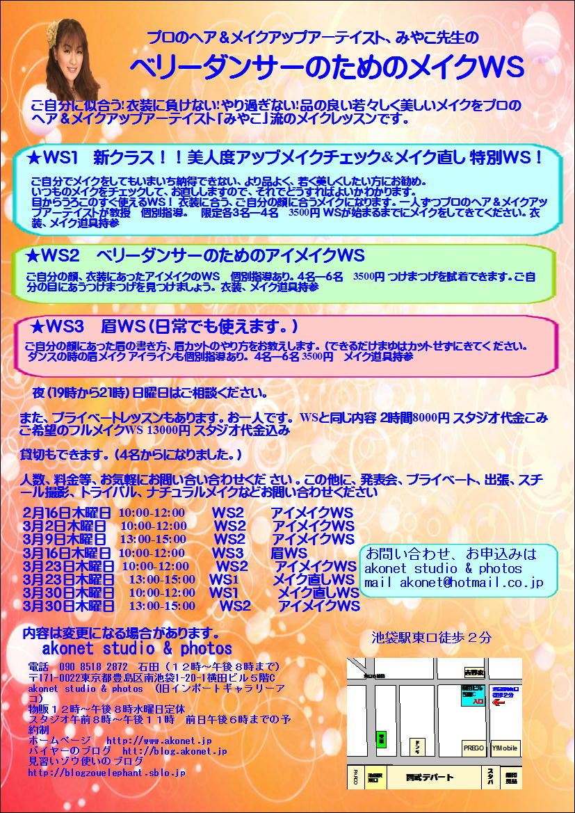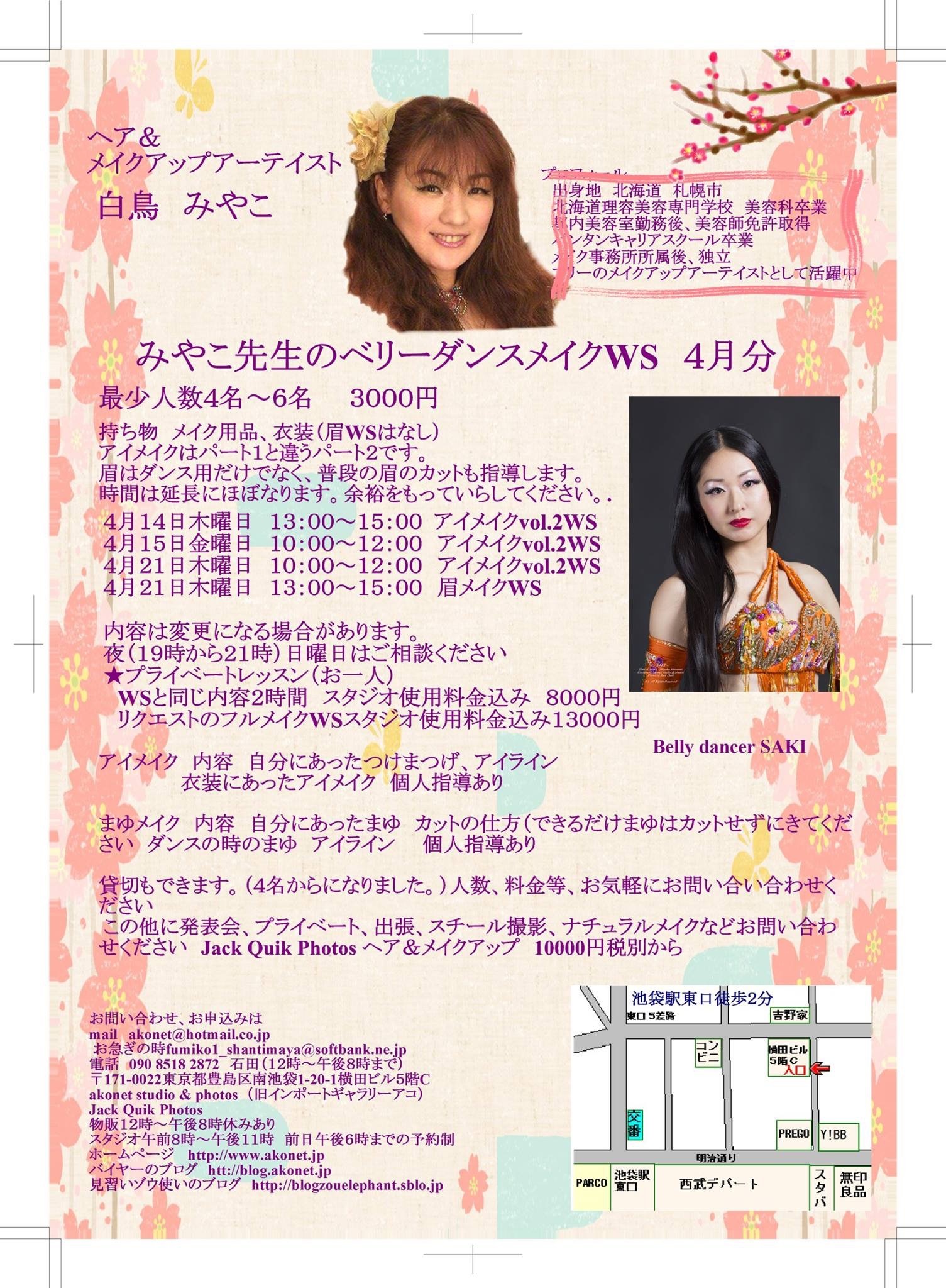白鳥みやこ先生のベリーダンサーのためのメイクアップWSが新しくなって始まります。